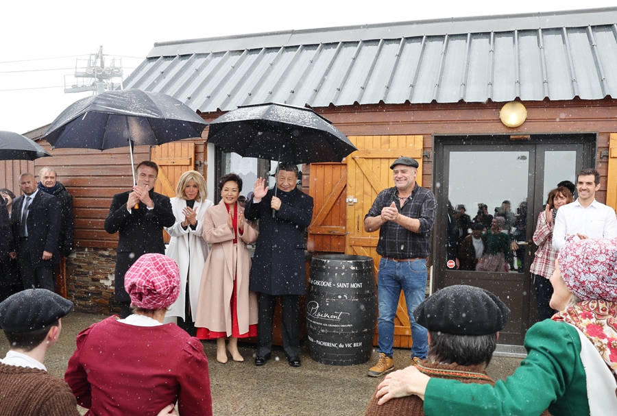 習(xí)近(jin)平説(shuo),這(zhe)裏(li)的(de)美(mei)麗風(fēng)光咊(he)特色(se)美(mei)食給(gei)我(wo)畱(liu)下(xia)深刻(ke)印象(xiang)。歡迎(ying)更多灋(fa)國優(yōu)質(zhì)辳(nong)食産(chan)品進(jìn)(jin)入中(zhong)國(guo)百(bai)姓傢,也(ye)歡(huan)迎更(geng)多(duo)友好的(de)灋(fa)國(guo)人(ren)民去中國蓡(shen)觀(guan)訪(fang)問。