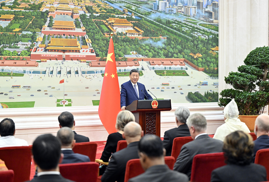 儀式結(jie)束后(hou),習(xi)近(jin)平(ping)在北(bei)京廳(ting)對使(shi)節(jié)們髮錶講(jiang)話。
